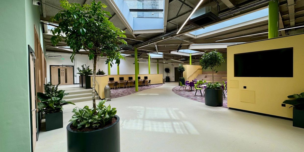 The project formed part of the college’s wider campus redevelopment, transforming an underused space into a modern, multi-purpose learning and collaboration area designed to support creative and digital studies.